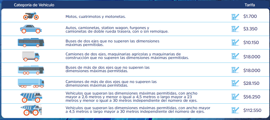 En virtud de los dispuesto en el Decreto Supremo MOP N°149 de 2017, publicado en el Diario Oficial el 10 de abril de 2018, se informa al público que una vez autorizada la Puesta en Servicio Provisoria del Sector A de la Concesión Vial Rutas del Loa (Ruta 25, Enlace Carmen Alto-Calama), y según lo dispuesto en el artículo Numeral 1.14.2 de las Bases de Licitación Concesión Vial Rutas Del Loa, se presentan las tarifas de la Plaza de Peaje Troncal “Cerritos Bayos” ubicada en el km 74.100 de la Ruta 25, para el año 2026.